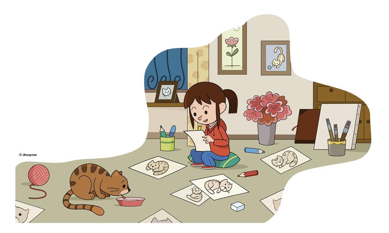 Libros ilustrados, proyectos educativos, muchos dibujos y algunos gatos.
