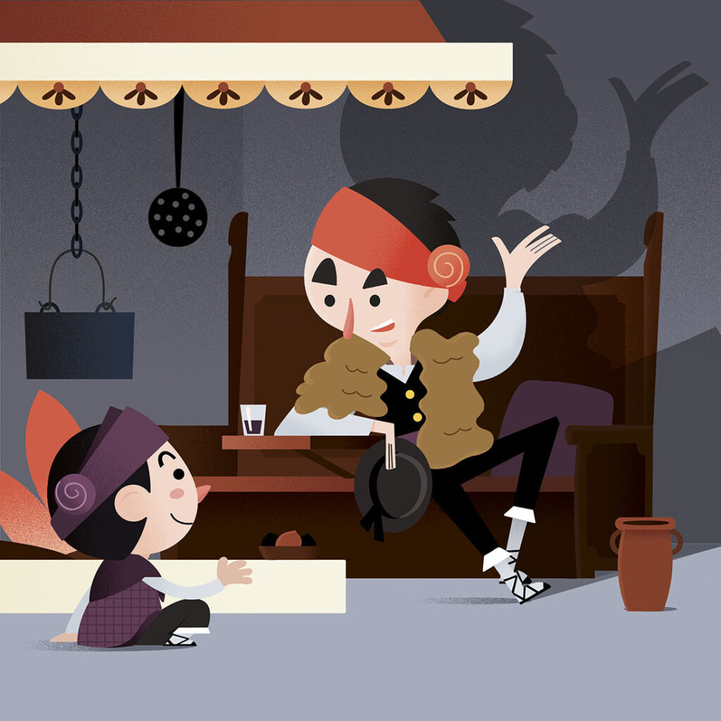 En bel puesto, una ninona u on ninón bendeziba a tronca, se meteba denzima a esgarramanchons y deziba: