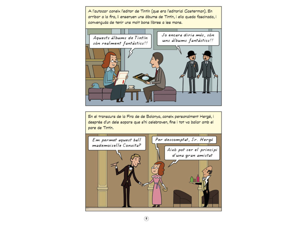 Com Tintín va arribar al nostre país.  Biografía de Conchita Zendrera, la editora de Juventud que va a traer «Las aventuras de Tiuntín a España», y otras obras claves de la literatura juvenil como «Los cinco». Guión de Jordi Duch, presidente de la asociación 1001.